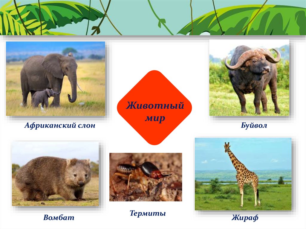 Слон, жираф, антилопы,