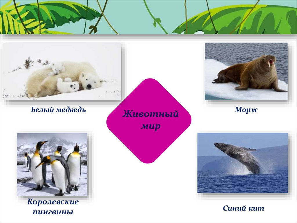 Белый медведь, пингвины