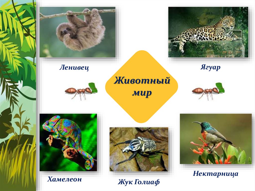 Обезьяны, ягуар, ленивец,