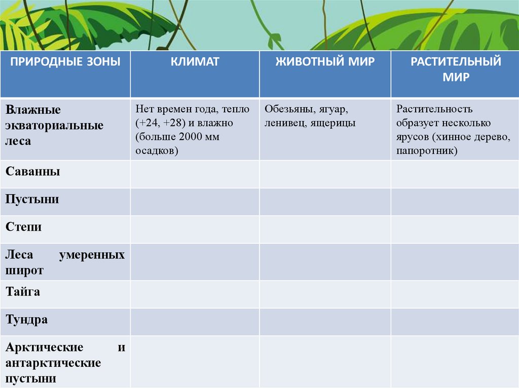 ПРИРОДНЫЕ ЗОНЫНет времен года, тепло