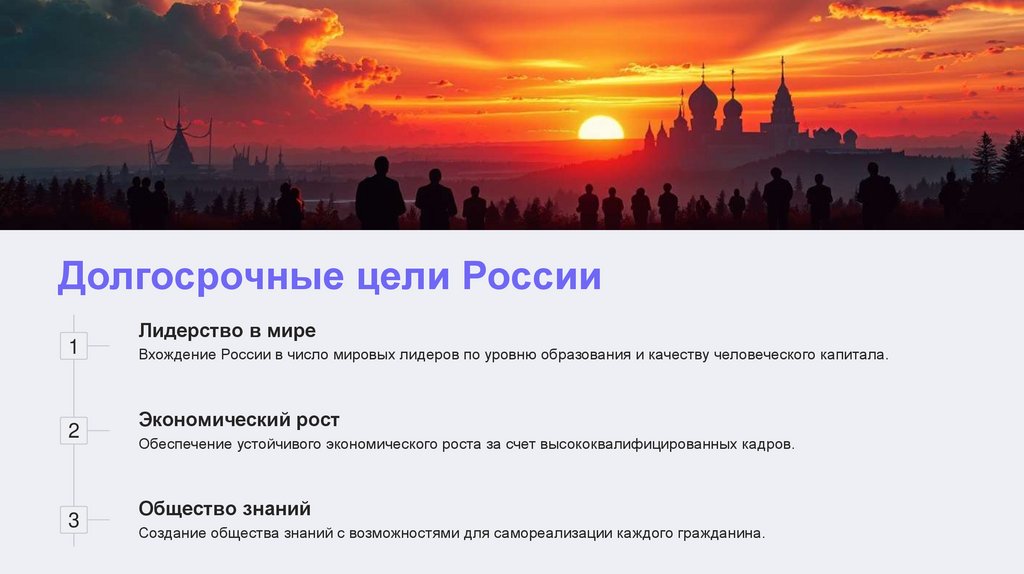 Вхождение России в число мировых лидеров по уровню образования и качеству человеческого капитала.