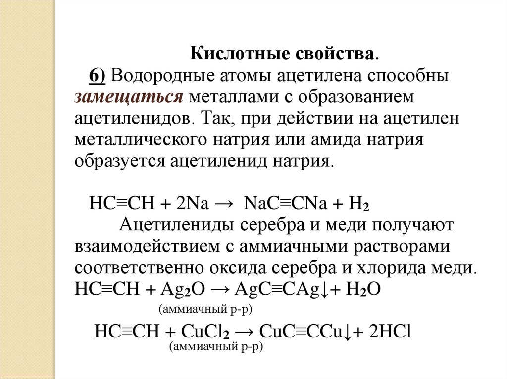 Кислотные свойства.6) Водородные атомы ацетилена способны