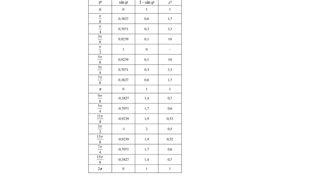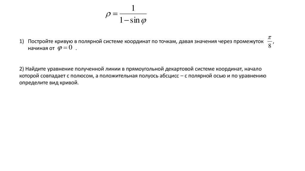 1) Постройте кривую в полярной системе координат по точкам, давая значения через промежуток