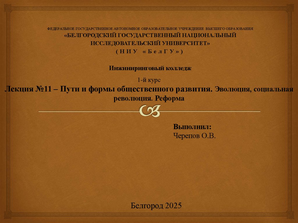 Лекция №11 – Пути и формы общественного развития. Эволюция, социальная