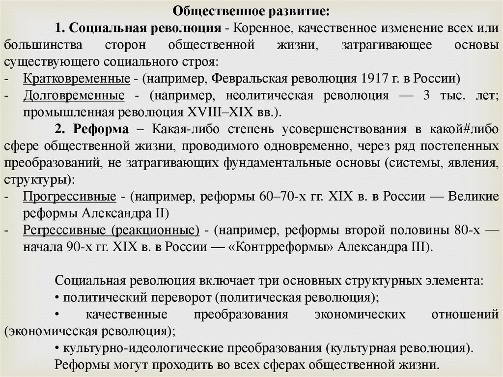 Общественное развитие:1. Социальная революция - Коренное, качественное изменение всех или