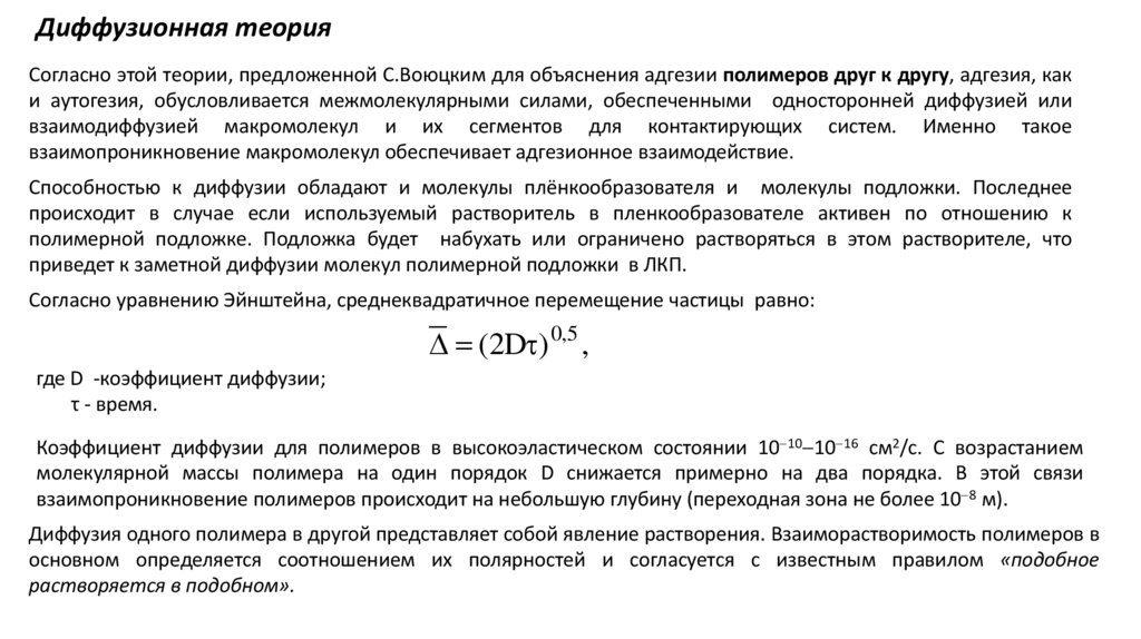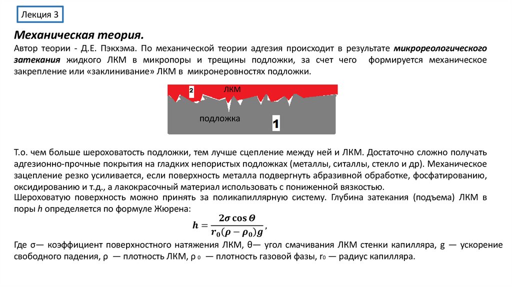 Автор теории - Д.Е. Пэкхэма. По механической теории адгезия происходит в результате микрореологического