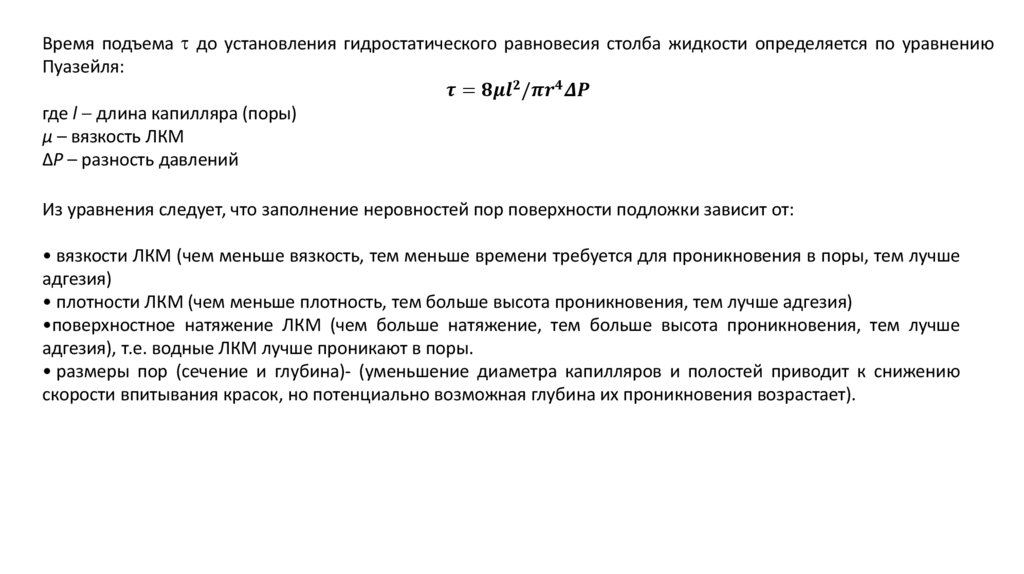 Шероховатую поверхность можно принять за поликапиллярную систему. Глубина затекания (подъема) ЛКМ в