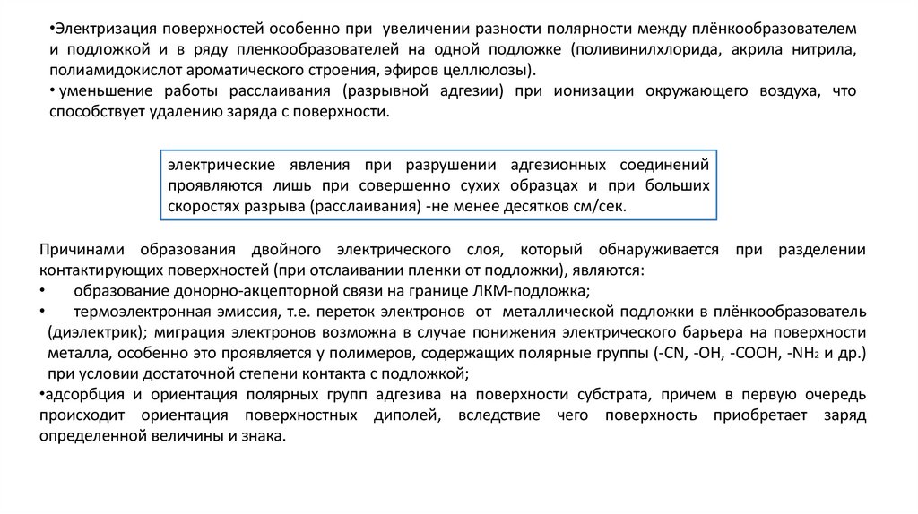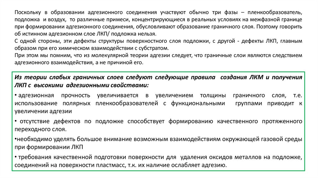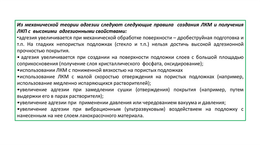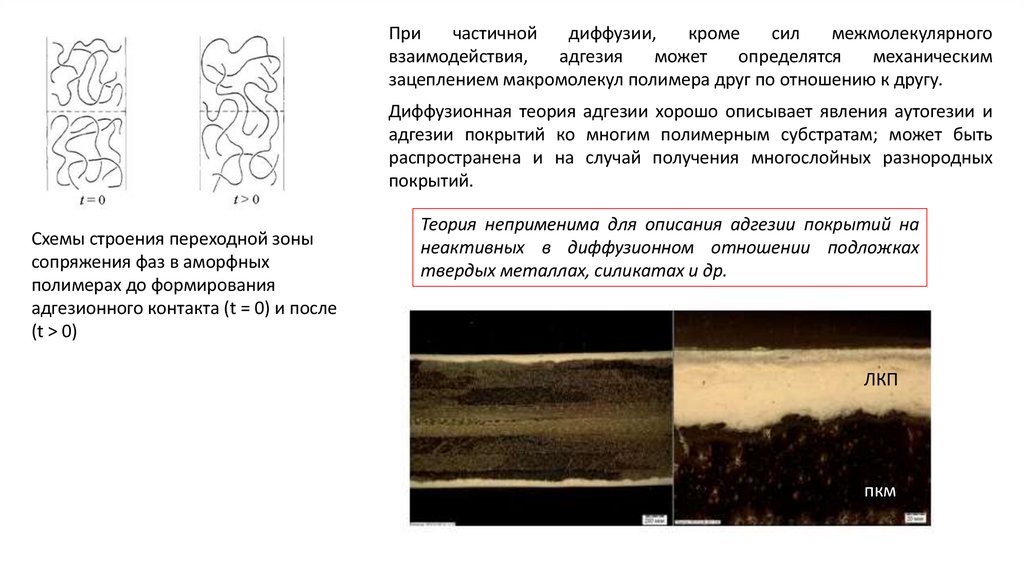 закрепление или «заклинивание» ЛКМ в микронеровностях подложки.