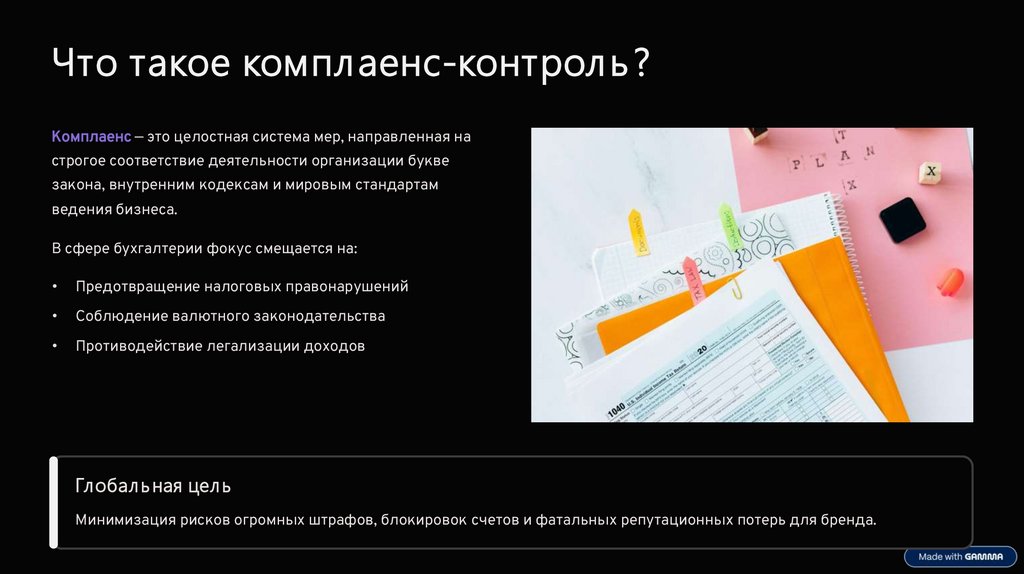 Что такое компл аенс-контрол ь ?Комплаенс — это целостная система мер, направленная на