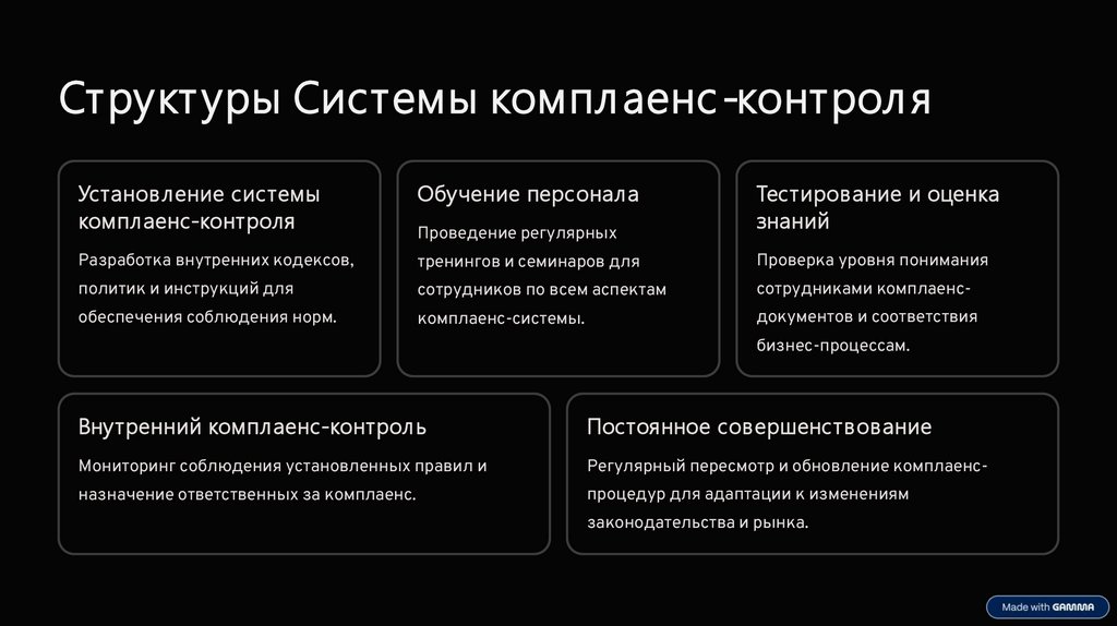 Структ уры Системы компл аенс -контрол яУстановл ение системы