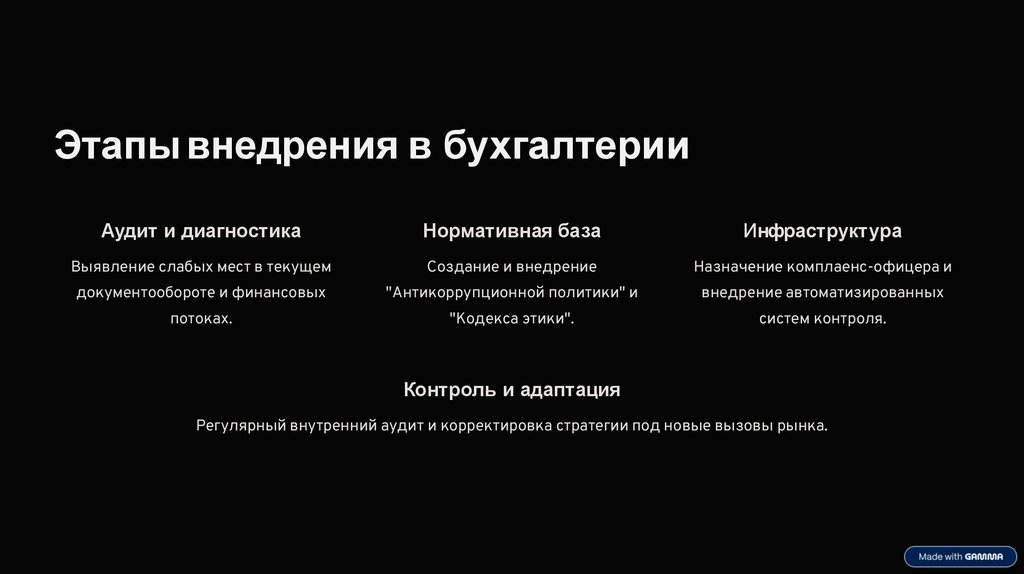 Регулярный внутренний аудит и корректировка стратегии под новые вызовы рынка.