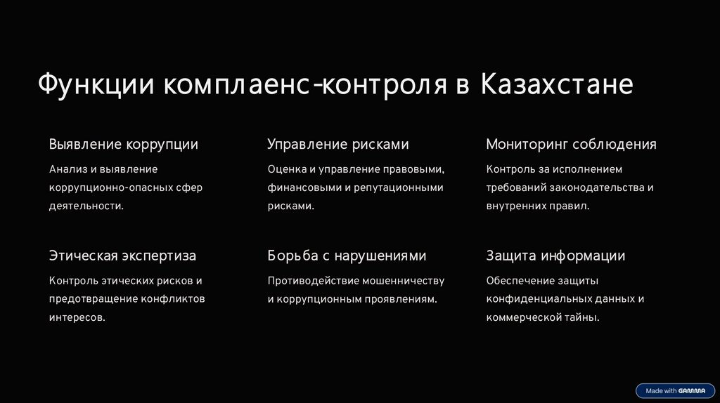 Функции компл аенс -контрол я в КазахстанеВыявление коррупции