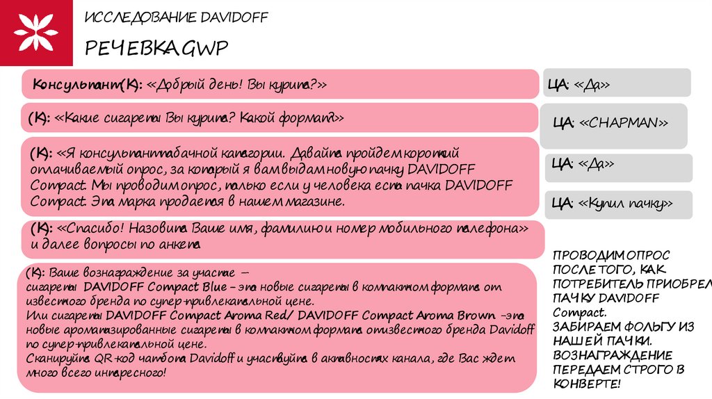 ории о знании бренда DAVIDOFF, и изучаем предпочт