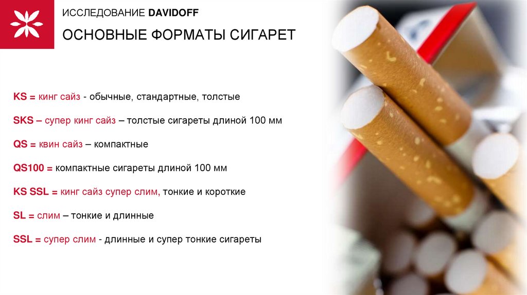 ИССЛЕДОВАНИЕ DAVIDOFFОСНОВНЫЕ ФОРМАТЫ СИГАРЕТ