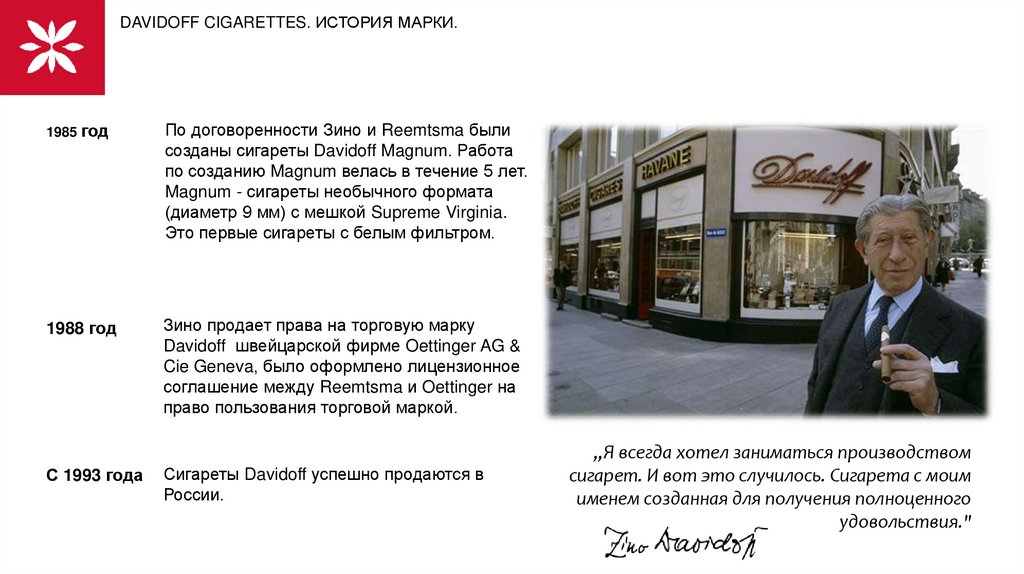 DAVIDOFF CIGARETTES. ИСТОРИЯ МАРКИ.1985 год