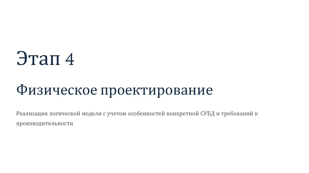Реализация логической модели с учетом особенностей конкретной СУБД и требований к