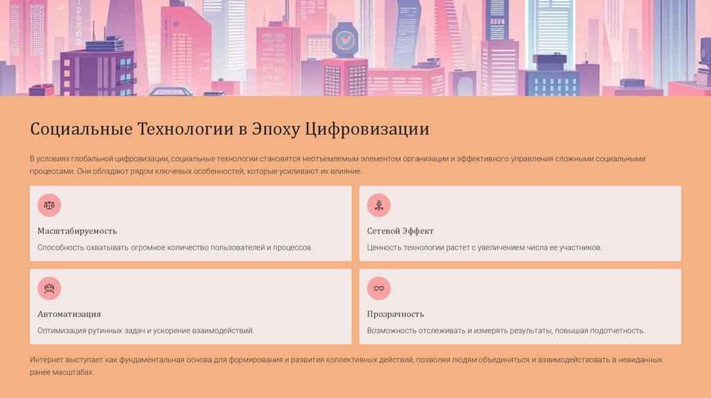 Социальные Технологии в Эпоху ЦифровизацииВ условиях глобальной цифровизации, социальные технологии становятся неотъемлемым элементом организации и эффективного управления сложными социальными