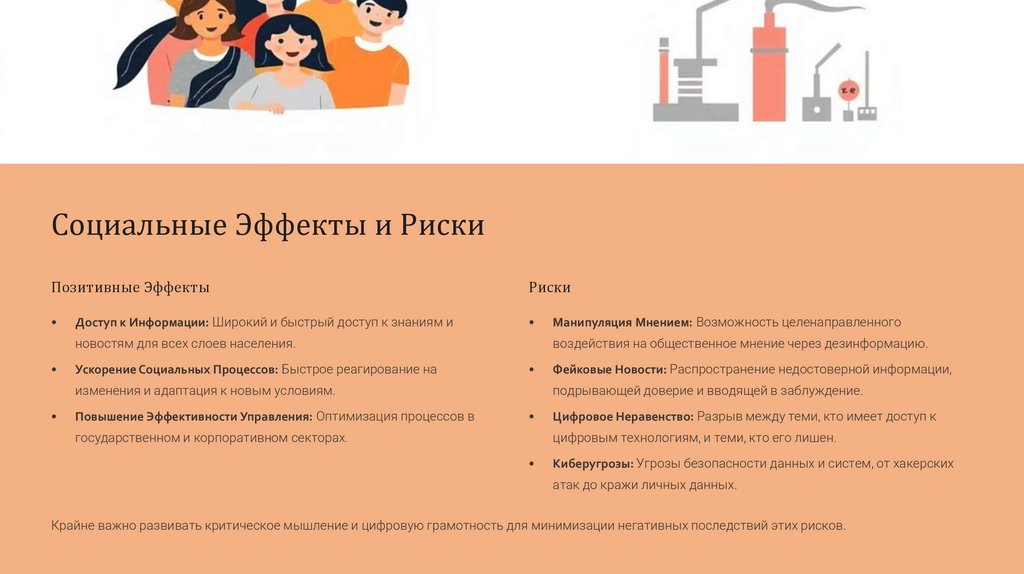 Крайне важно развивать критическое мышление и цифровую грамотность для минимизации негативных последствий этих рисков.