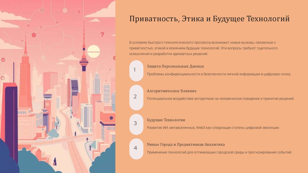 приватностью, этикой и влиянием будущих технологий. Эти вопросы требуют тщательного