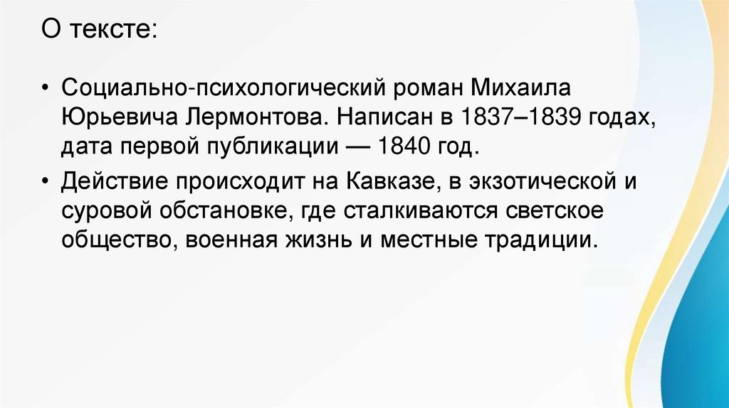 Юрьевича Лермонтова. Написан в 1837–1839 годах,