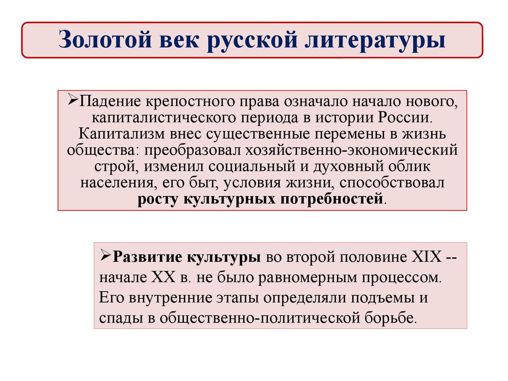 Золотой век русской литературыПадение крепостного права означало начало нового,