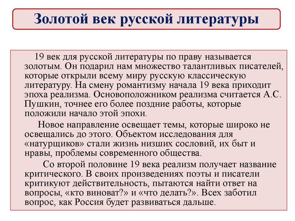 Золотой век русской литературы19 век для русской литературы по праву называется