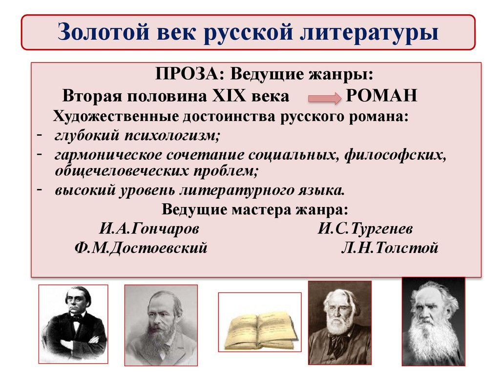 Золотой век русской литературыПРОЗА: Ведущие жанры: