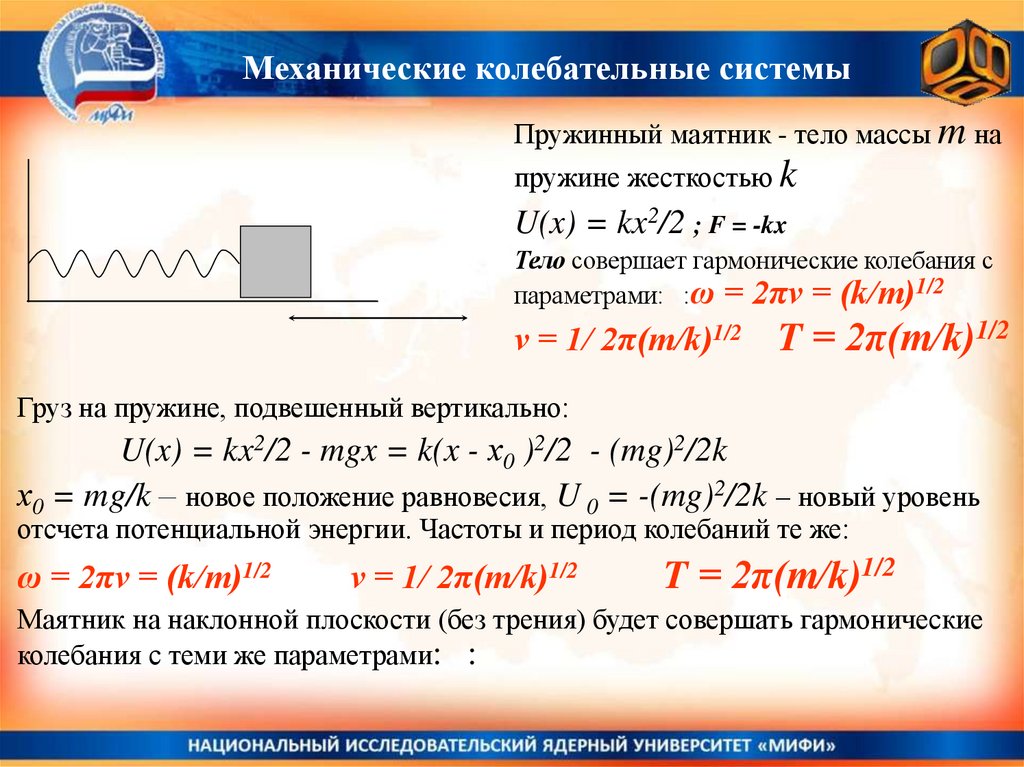 U(x) = kx2/2 - mgx = k(x - х0 )2/2 - (mg)2/2k