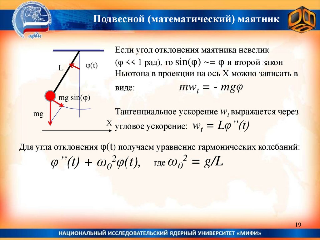 (φ << 1 рад), то sin(φ) ~= φ и второй закон