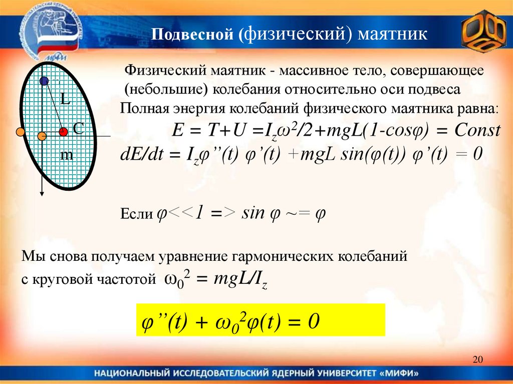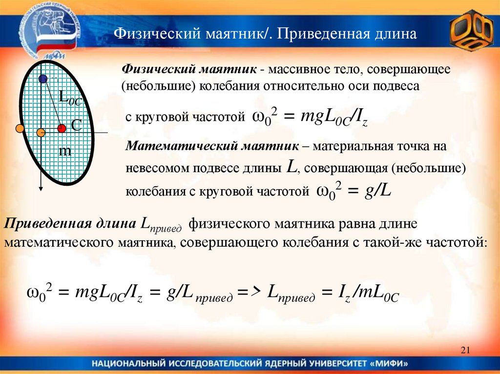 ω02 = mgL0C/Iz = g/L привед => Lпривед = Iz /mL0C