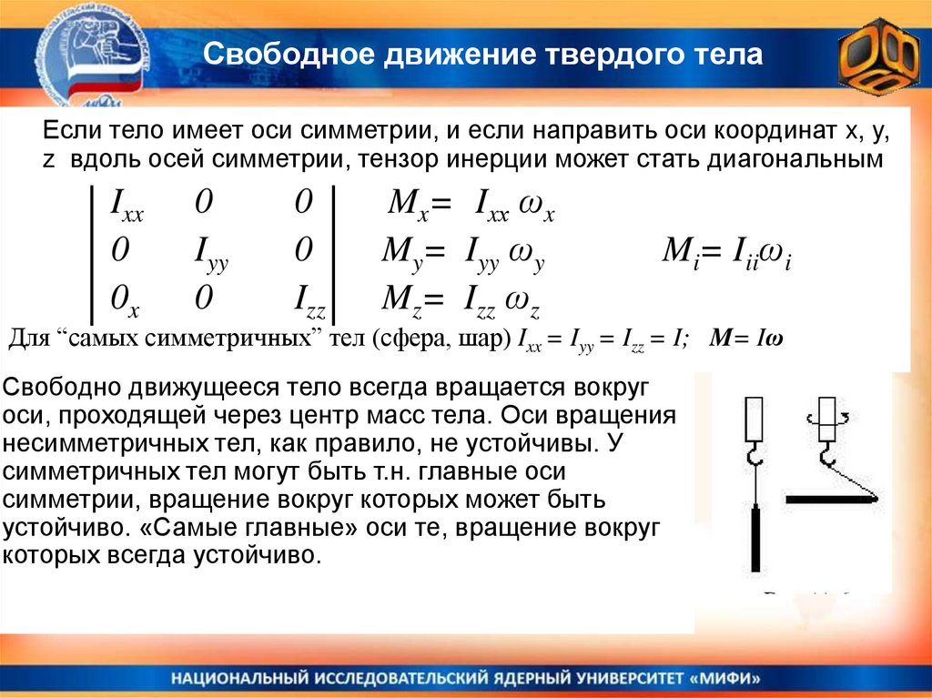Свободное движение твердого телаЕсли тело имеет оси симметрии, и если направить оси координат x, y,