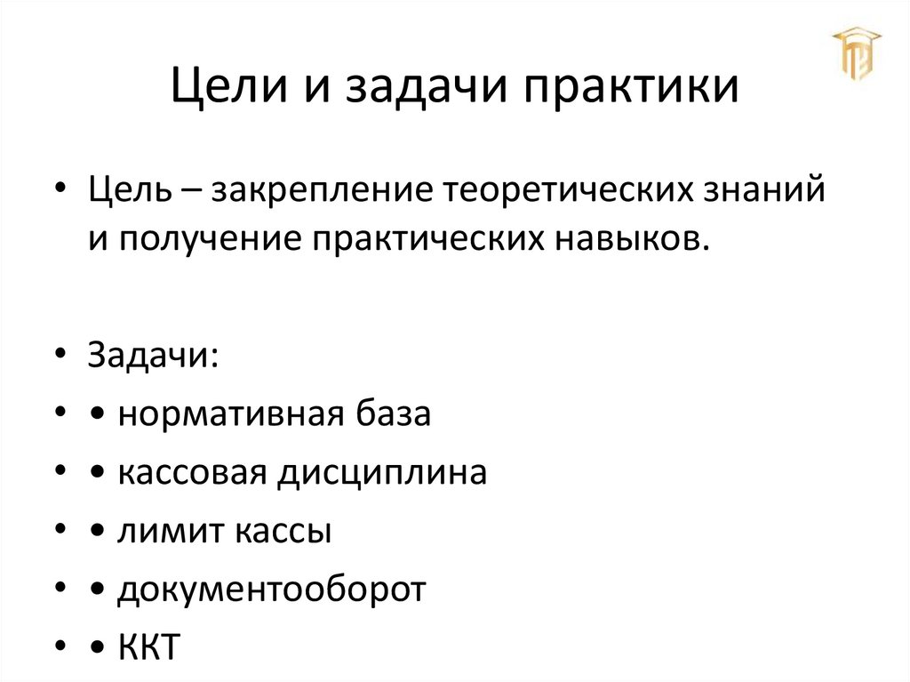 Цели и задачи практики• Цель – закрепление теоретических знаний