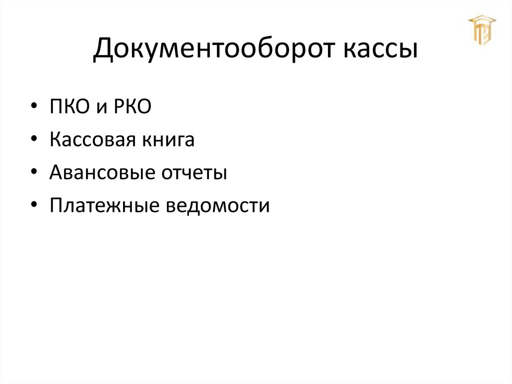 Документооборот кассы• ПКО и РКО