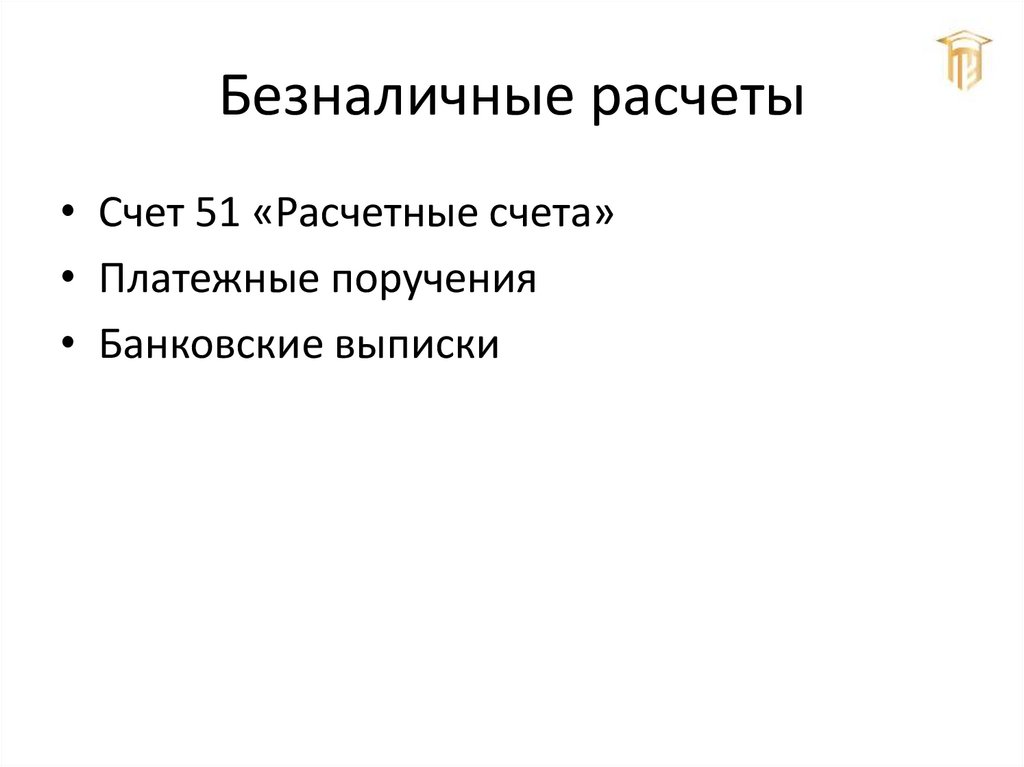 Безналичные расчеты• Счет 51 «Расчетные счета»