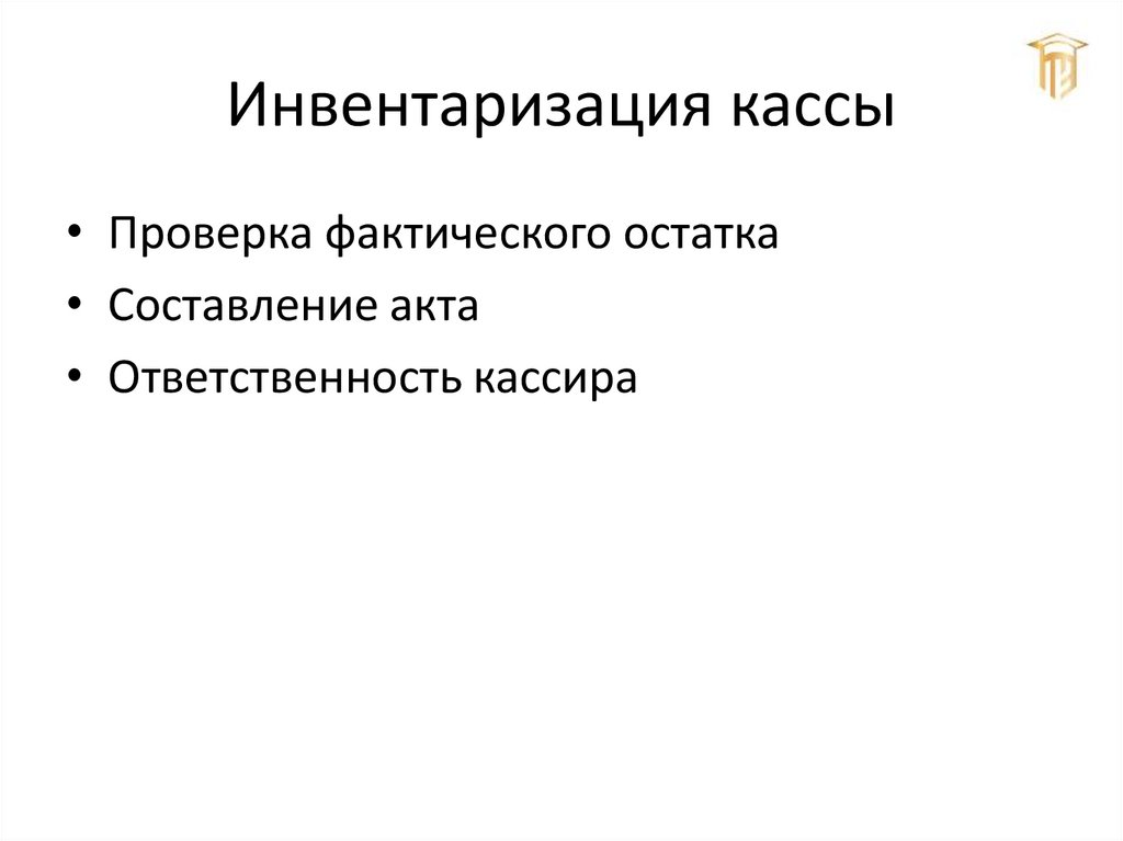 Инвентаризация кассы• Проверка фактического остатка
