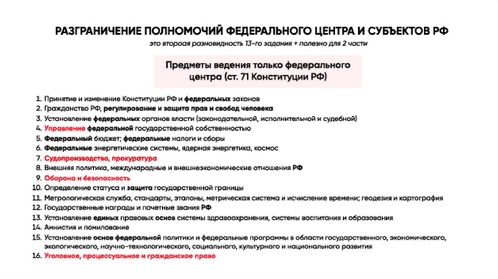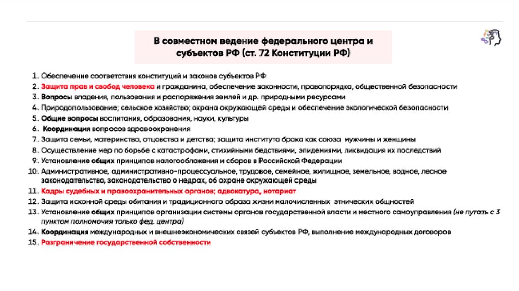 11. Разграничение полномочий. Совместное ведение РФ и субъектов
