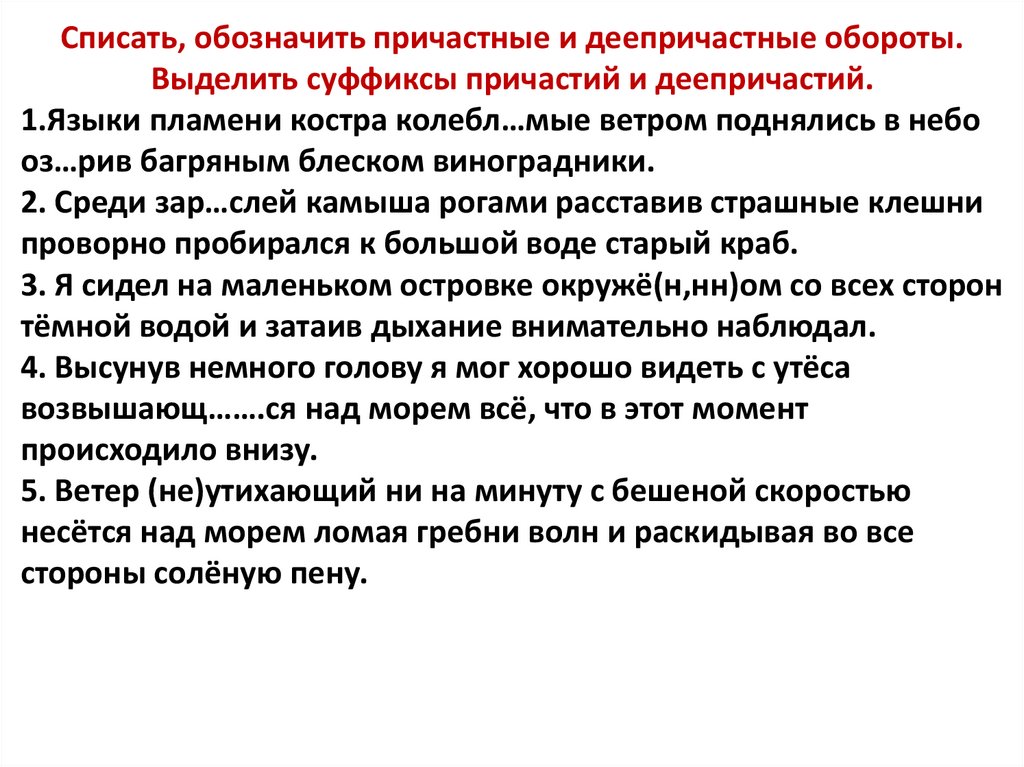 Списать, обозначить причастные и деепричастные обороты.Выделить суффиксы причастий и деепричастий.