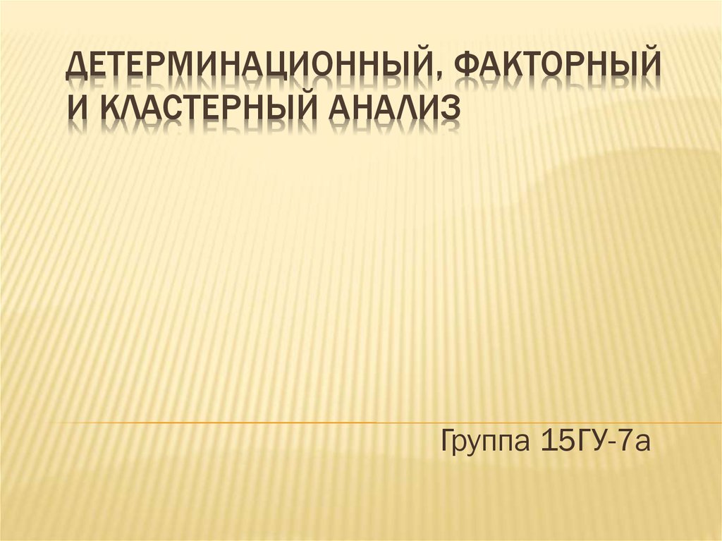 ДЕТЕРМИНАЦИОННЫЙ, ФАКТОРНЫЙИ КЛАСТЕРНЫЙ АНАЛИЗ
