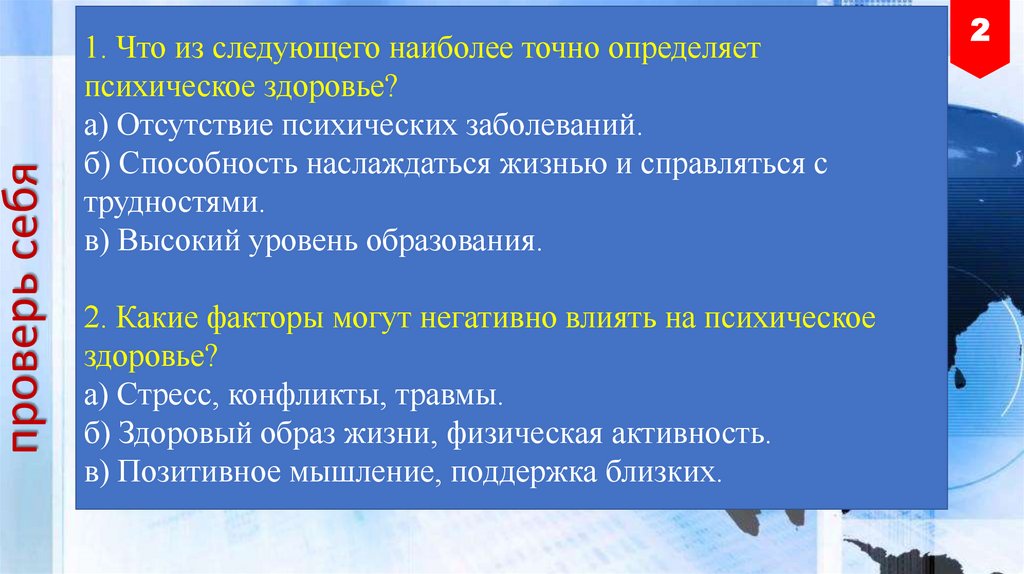 2. Какие факторы могут негативно влиять на психическое