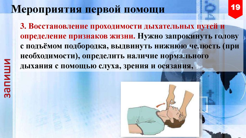 определение признаков жизни. Нужно запрокинуть голову