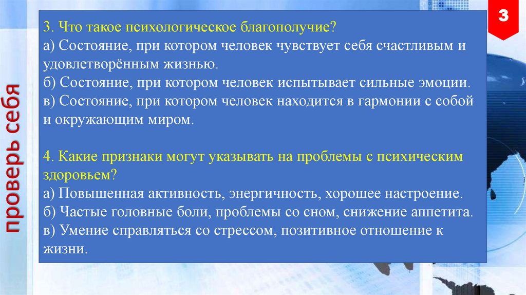 проверь себя3. Что такое психологическое благополучие?