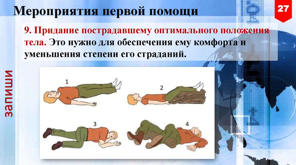 9. Придание пострадавшему оптимального положения