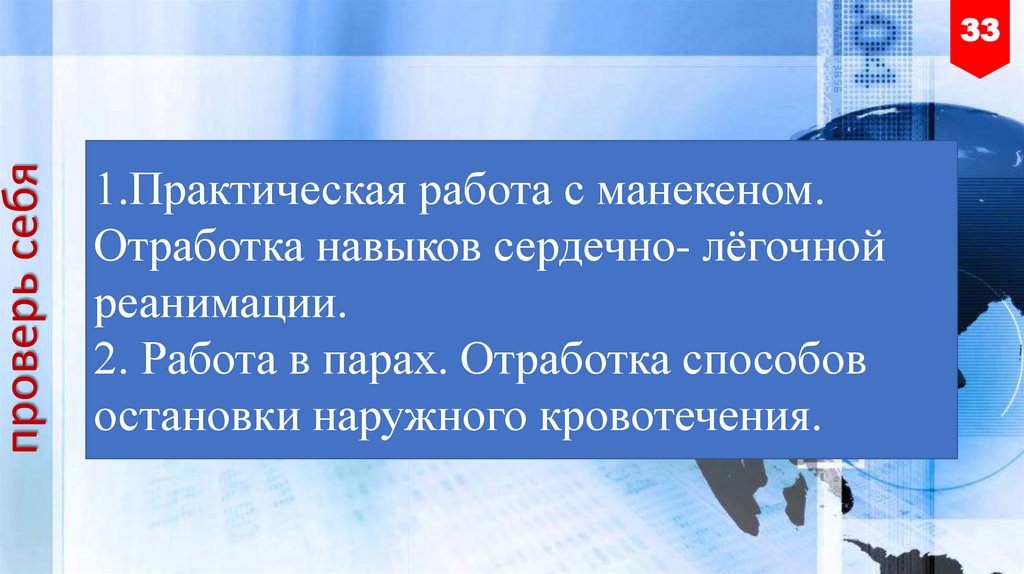 1.Практическая работа с манекеном.