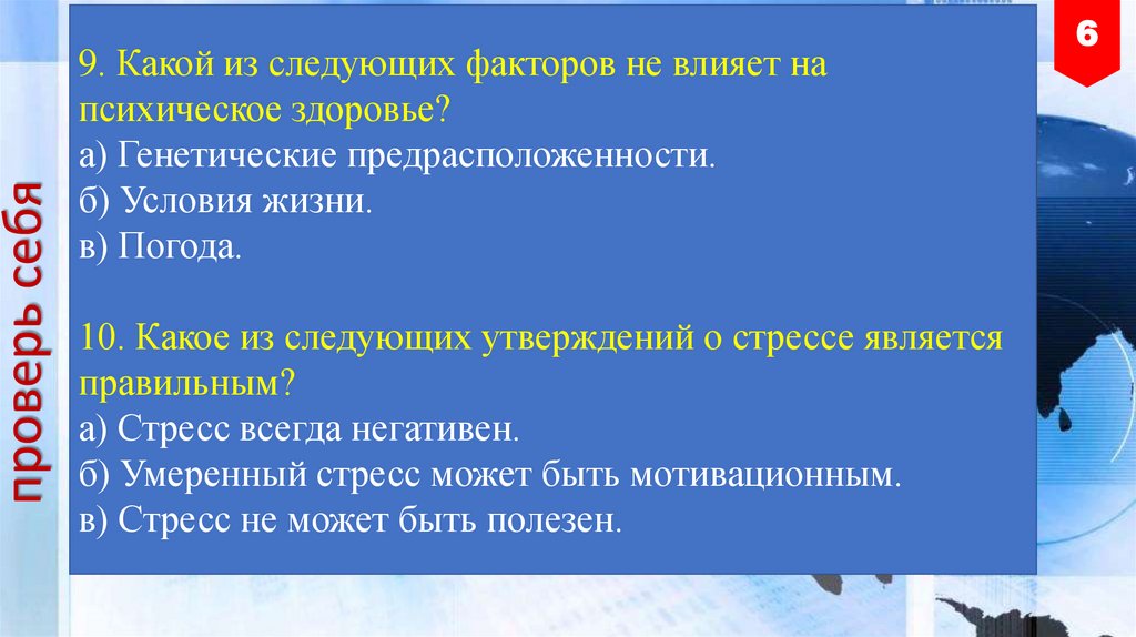 проверь себя9. Какой из следующих факторов не влияет на