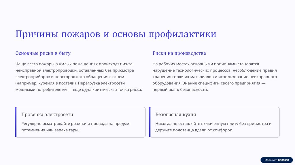 Причины пожаров и основы профилактикиОсновные риски в быту