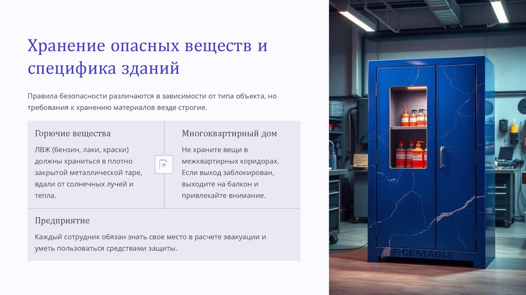 План эвакуации и противопожарное оборудованиеПлан эвакуации — это не просто схема на стене, а ваш путеводитель к спасению. Он указывает кратчайшие пути к выходам, места размещения огнетушителей и кнопок сигнализации.