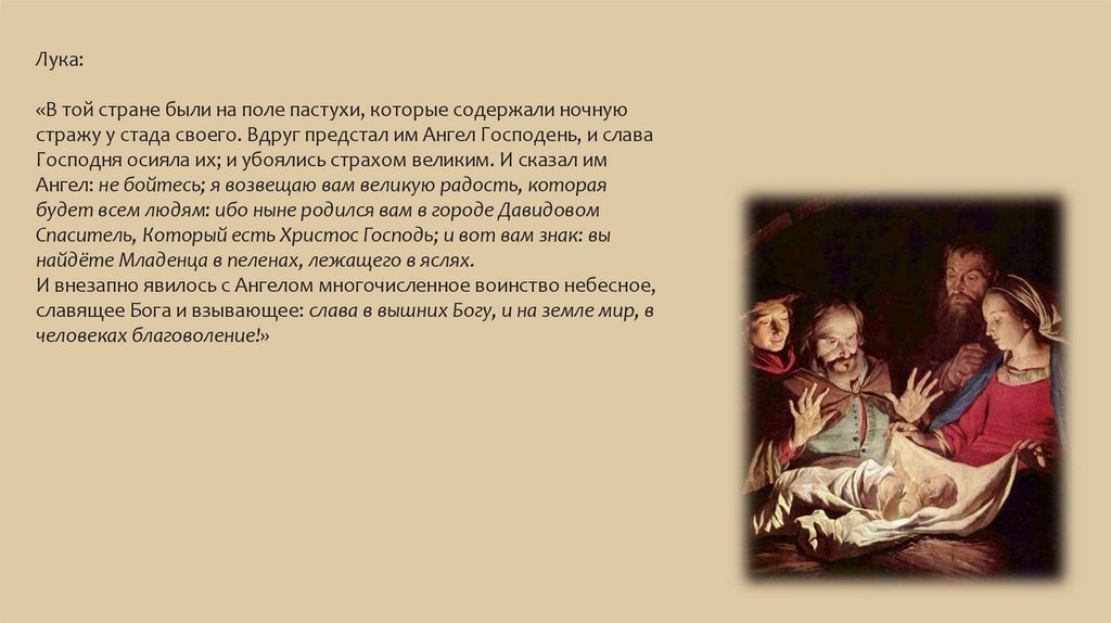 Лука:«В той стране были на поле пастухи, которые содержали ночную