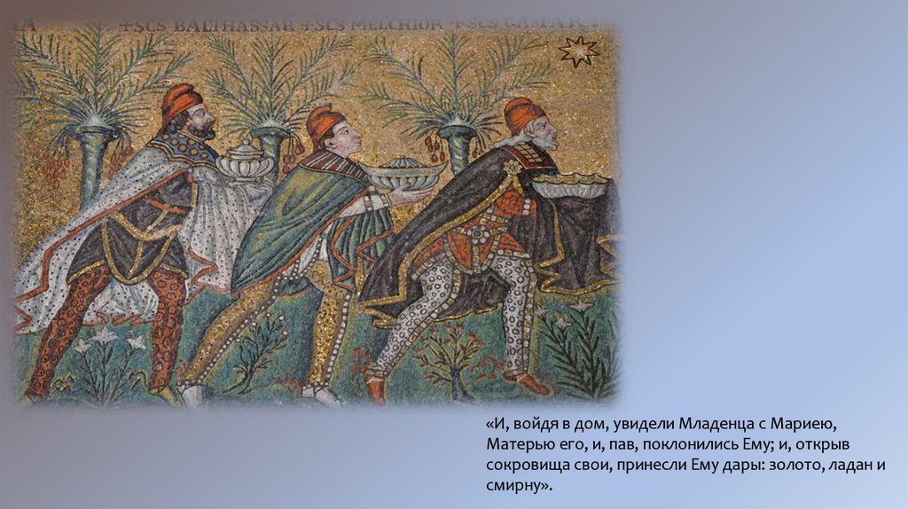«И, войдя в дом, увидели Младенца с Мариею,Матерью его, и, пав, поклонились Ему; и, открыв