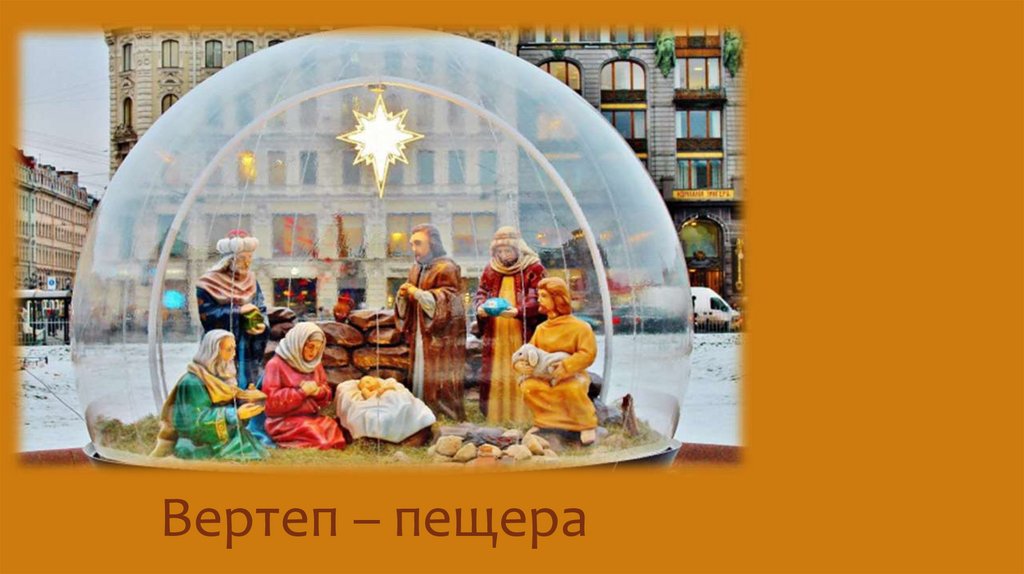 Животные вошли в пещеру, мужчина привязал их к яслям, а сам вышел, принес Деве зажженную свечу <...>.