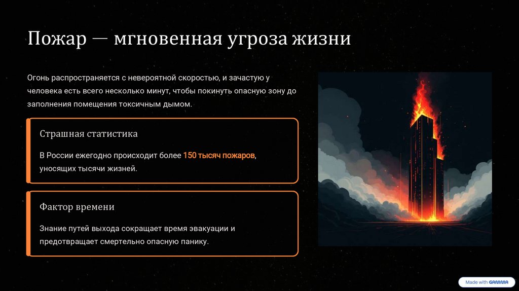 Пожар — мгновенная угроза жизниОгонь распространяется с невероятной скоростью, и зачастую у